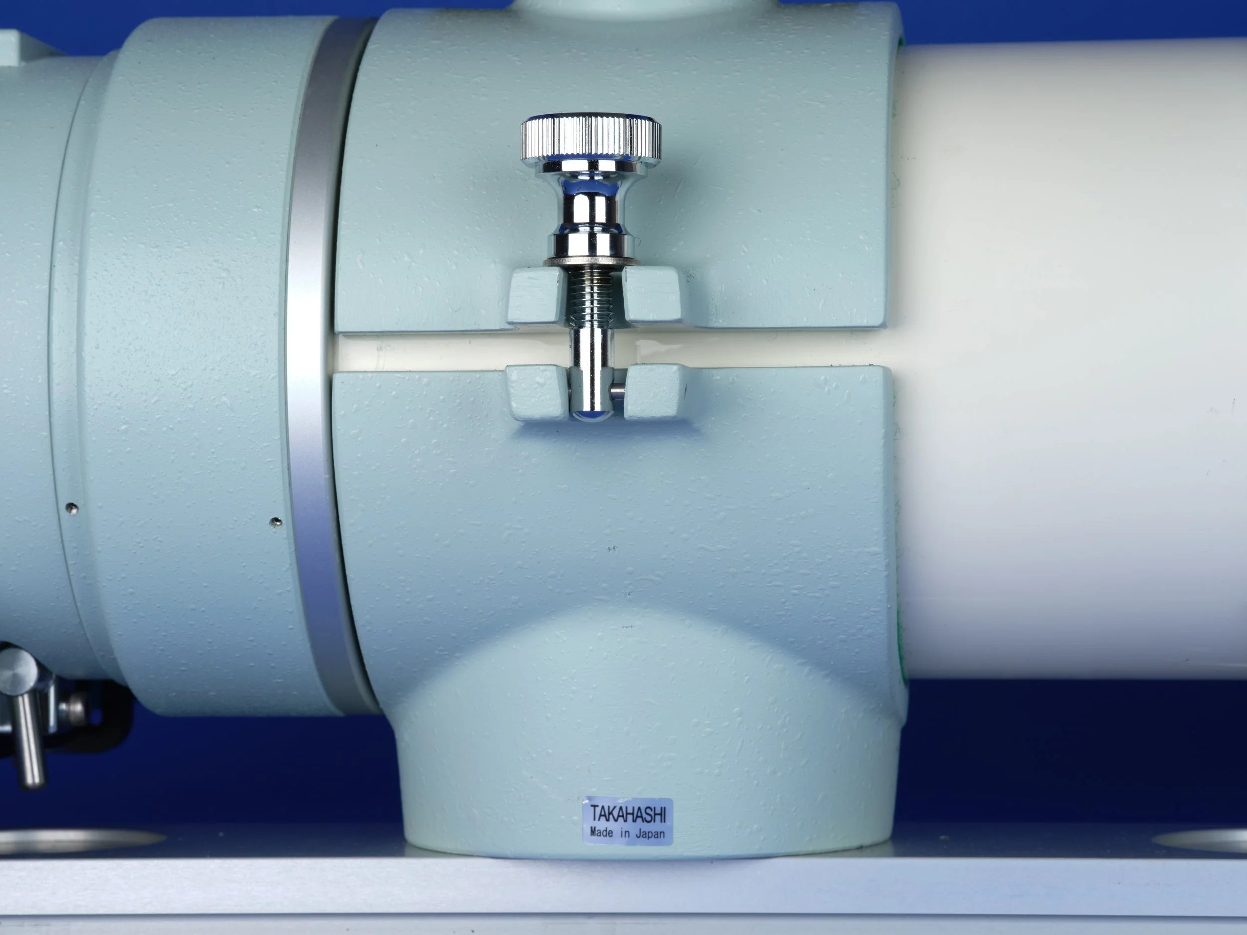 The tube is mounted on a Losmandy plate using an original Takahashi 125S cradle. This 1.2kg cradle with 125mm inner diameter offers more than sufficient support for the FSQ-106 tube. The 98mm wide bottom part of the cradle makes for a very solid connection to the mounting plate.