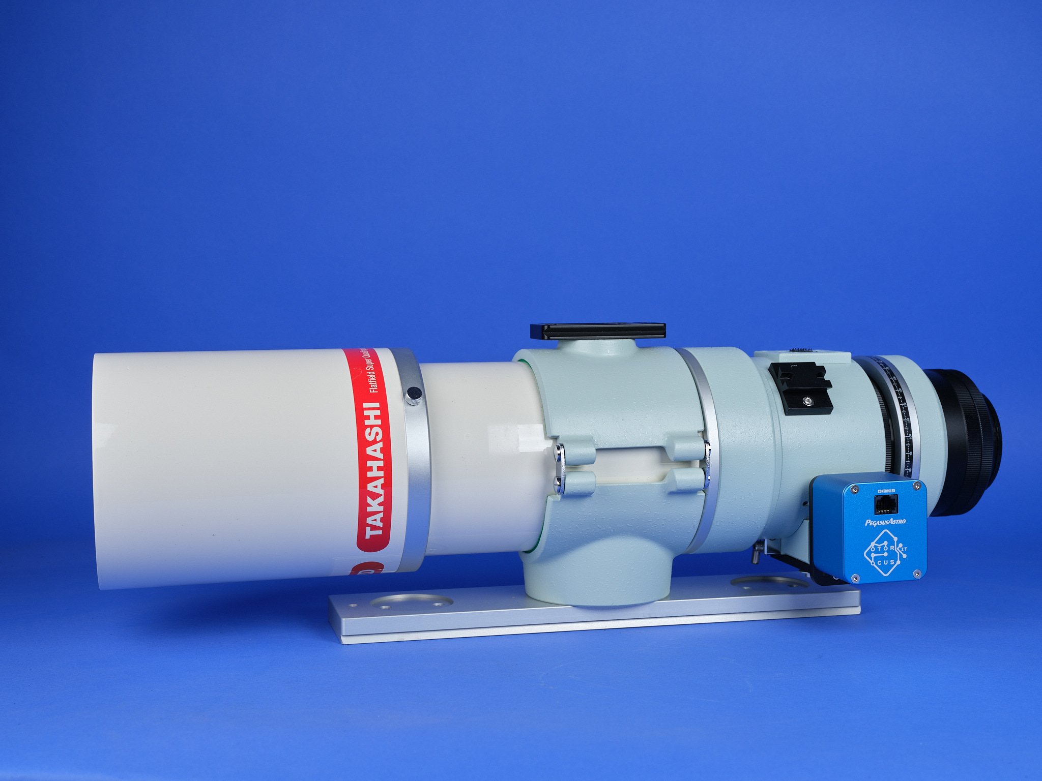 A 14” losmandy-style dovetail plate specifically designed for Takahashi cradles, forms the basis for attaching the FSQ-106EDX4 onto the mount. The sleek design makes for easy and comfortable attachment on the mount clamp. The thick plate has zero flex or torsion. These plates are custom designed and produced by European Takahashi importer Optique Unterlinden.