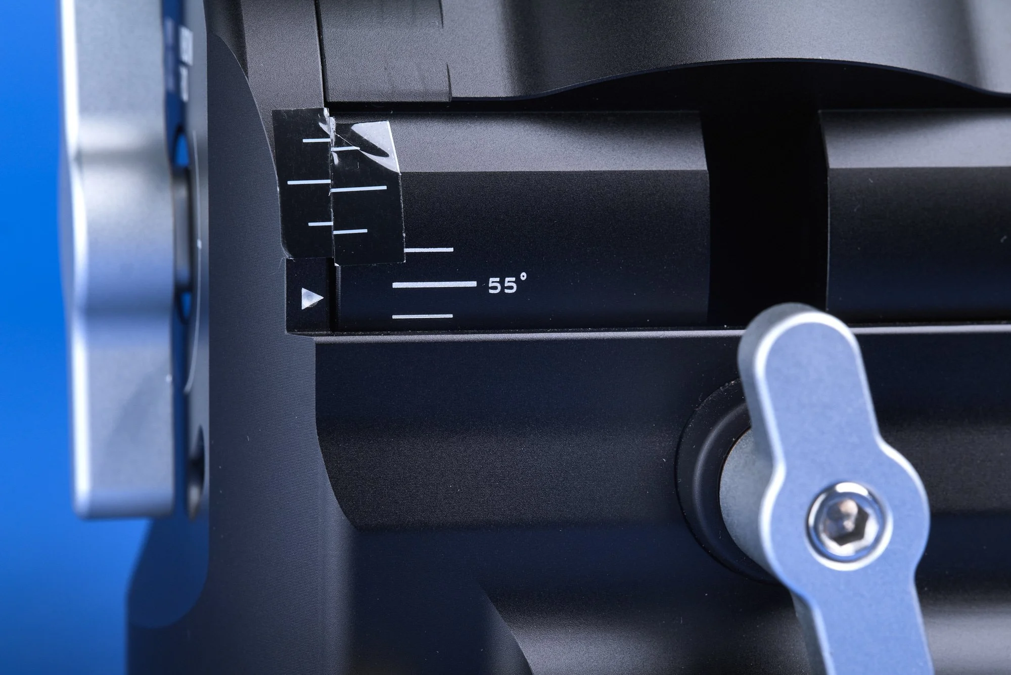 The scale on the altitude setting is not very precise. To speed up polar alignment, an extra marker has been added to the mount specifying the correct altitude setting for the location of the observatory. Polar alignment remains necessary, but using this little help makes for a good initial starting point.