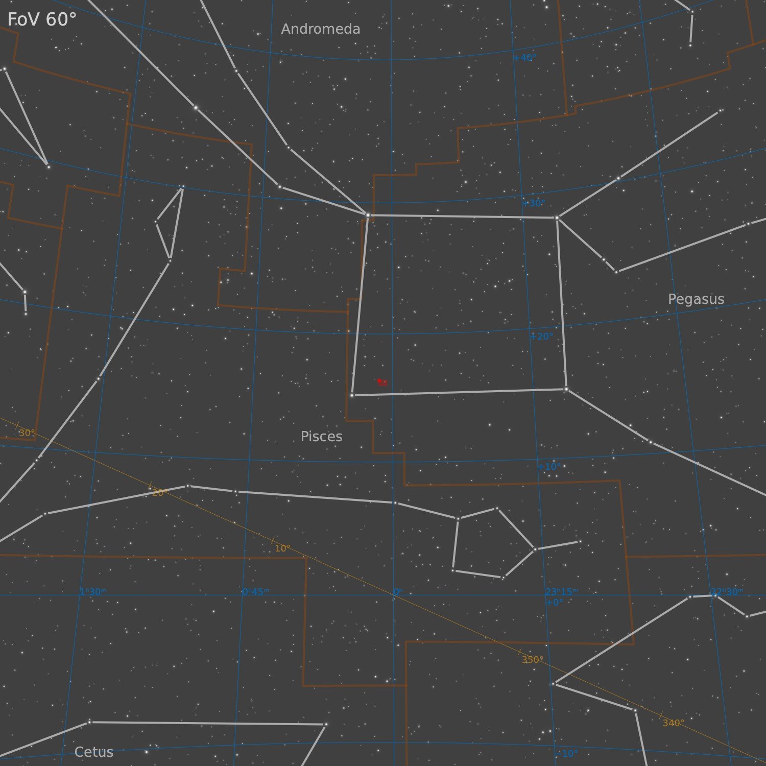 RA 00h 03m 09s Dec +16° 09’ 59” | 0°
