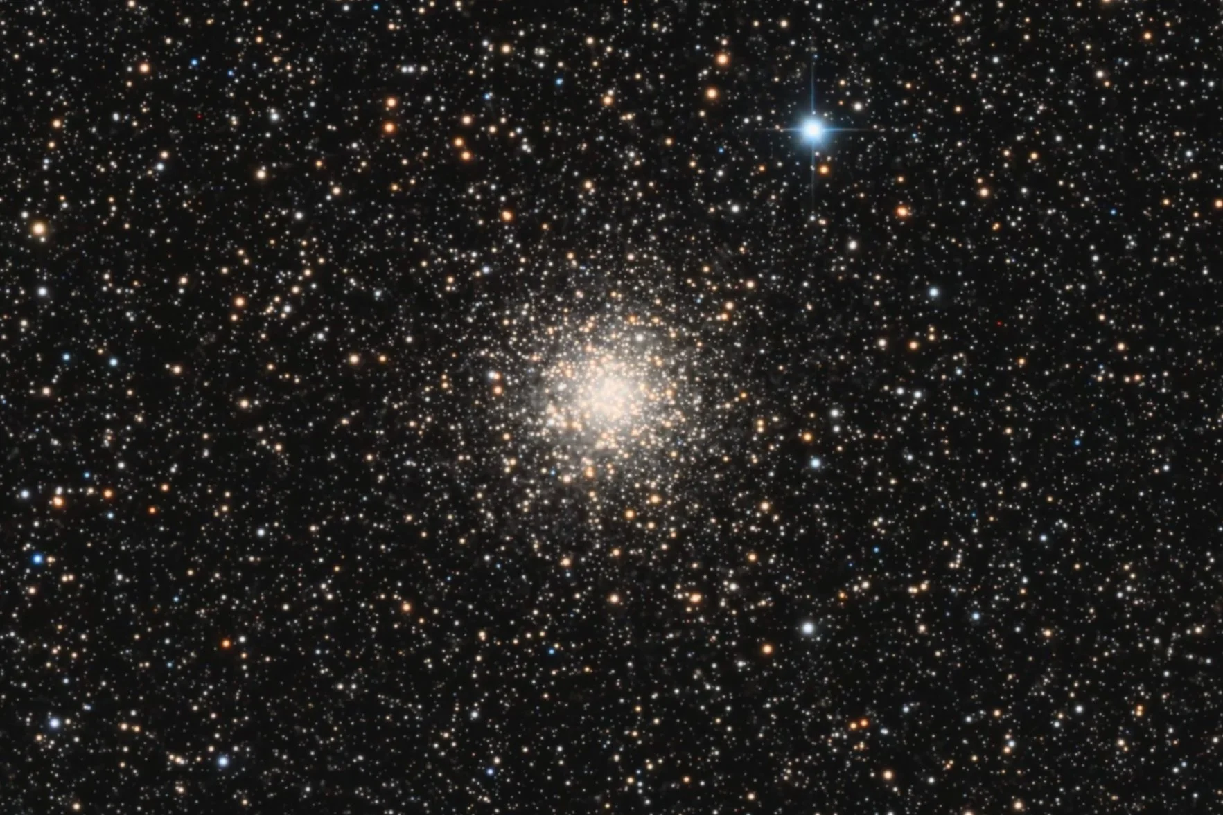 Messier 107, also known as the Crucifix Cluster, is a very loose globular cluster in the constellation Ophiuchus. It was discovered by Pierre Méchain in April 1782, and added to the Messier catalogue only in 1947 by Helen Sawyer Hogg together with three other objects found by Méchain. M107 is close to the galactic plane and about 20,900 light-years from Earth
