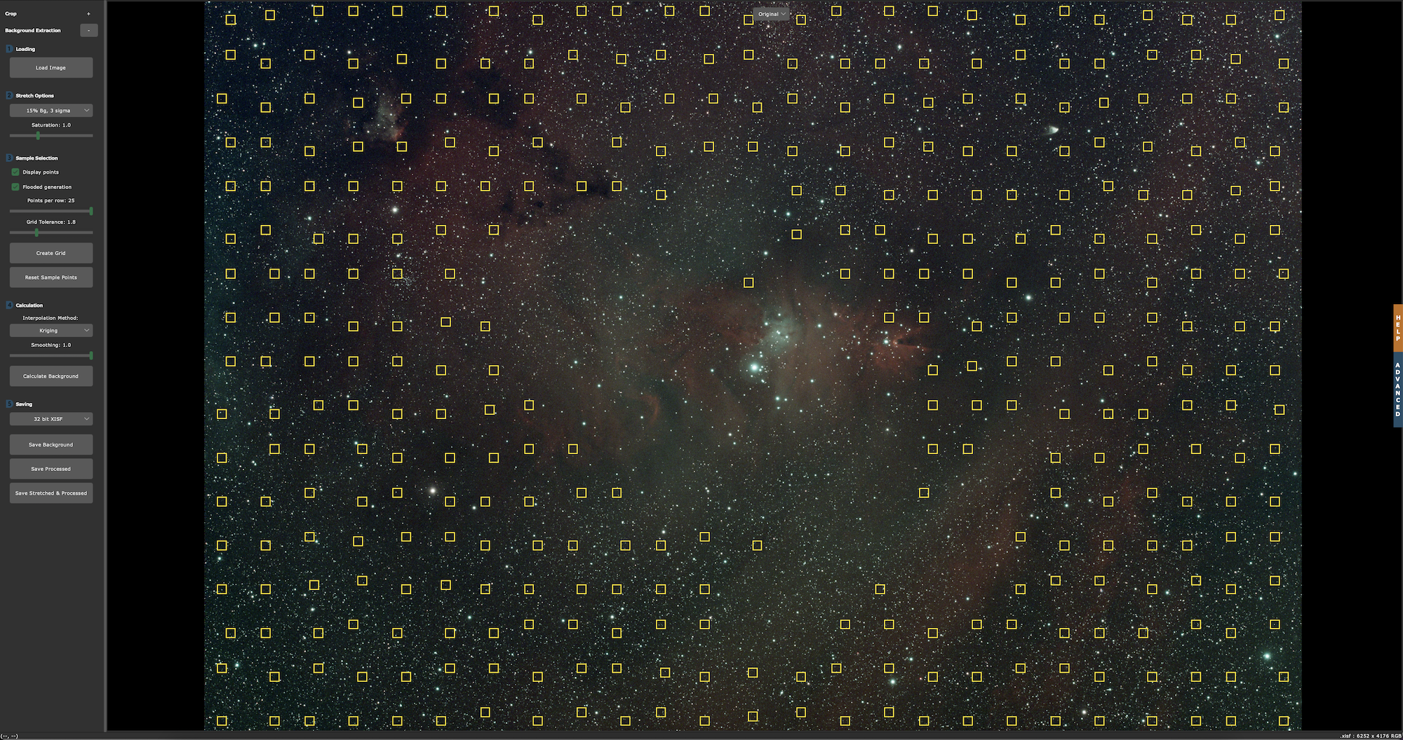 Next step was a background extraction procedure. But with an image that is full of nebulosity, it is very difficult to determine what is background and what is signal. So a DBE process would have been difficult. This seemed like the right occasion to test out a new tool, called GraXpert. This is stand-alone software that does one thing: background extraction. It reads the XISF files from PixInsight and can also export as such, so no image quality is lost in the process. While the software has many options for fine-tuning, the power lies in the fact that it can be used by simply clicking one button. The default settings seem to do a great job. In fact, I felt the result was slightly better than ABE in PixInsight, but again, this is difficult to judge on such a nebulous image. Overall the first impression is positive. The software is completely free of charge, so worthwhile checking out.