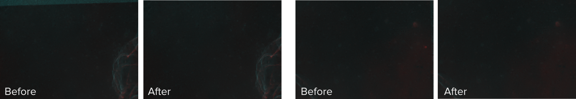 Star repairs in the top left corner using a mask created in Photoshop. Each other corner had similar issues.