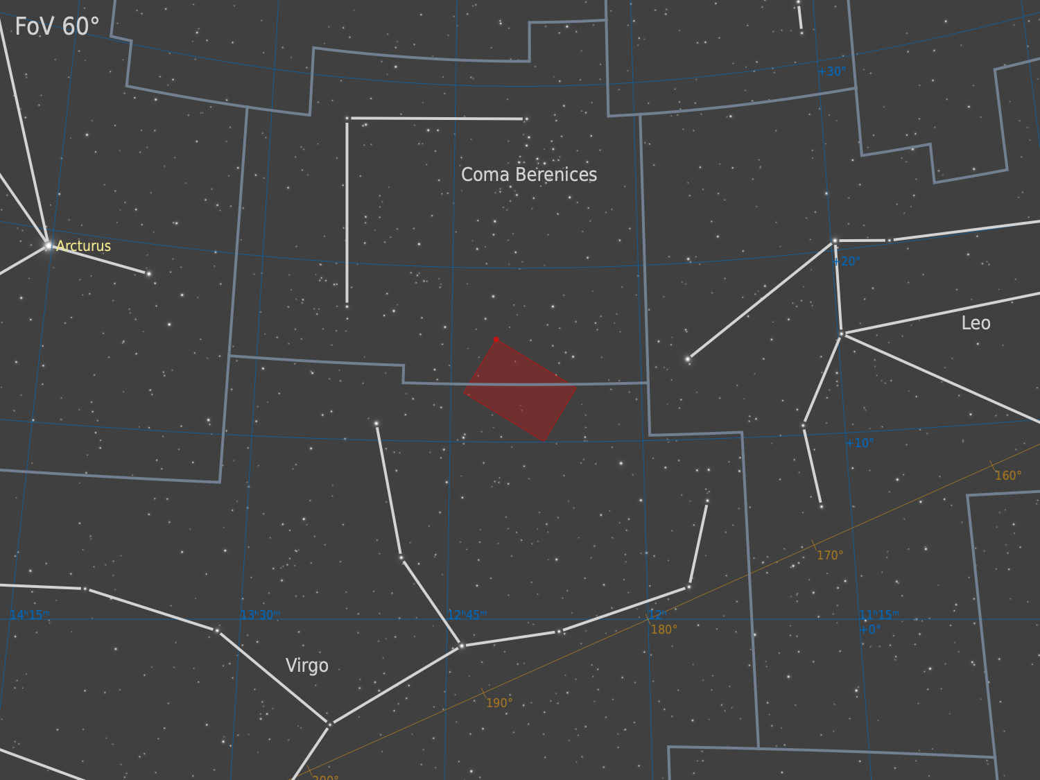The Virgo cluster is best observed in late winter, early spring. From The Netherlands, it can reach 65° in the sky. It was photographed from the backyard observatory in Groningen during several clear nights in a row, which is unusual nowadays. While the moon was present at around 50% illumination, there was enough angular distance from the moon, to not interfere too much with the image. Images for this photograph were taken on three different nights in early March 2025.