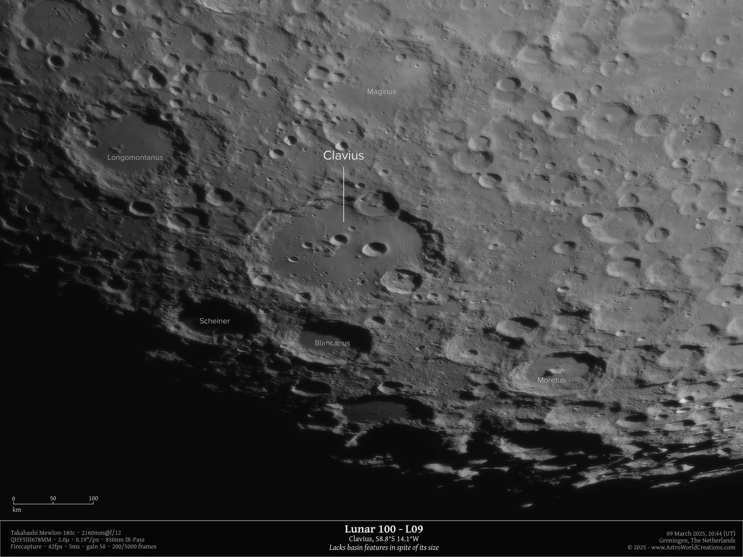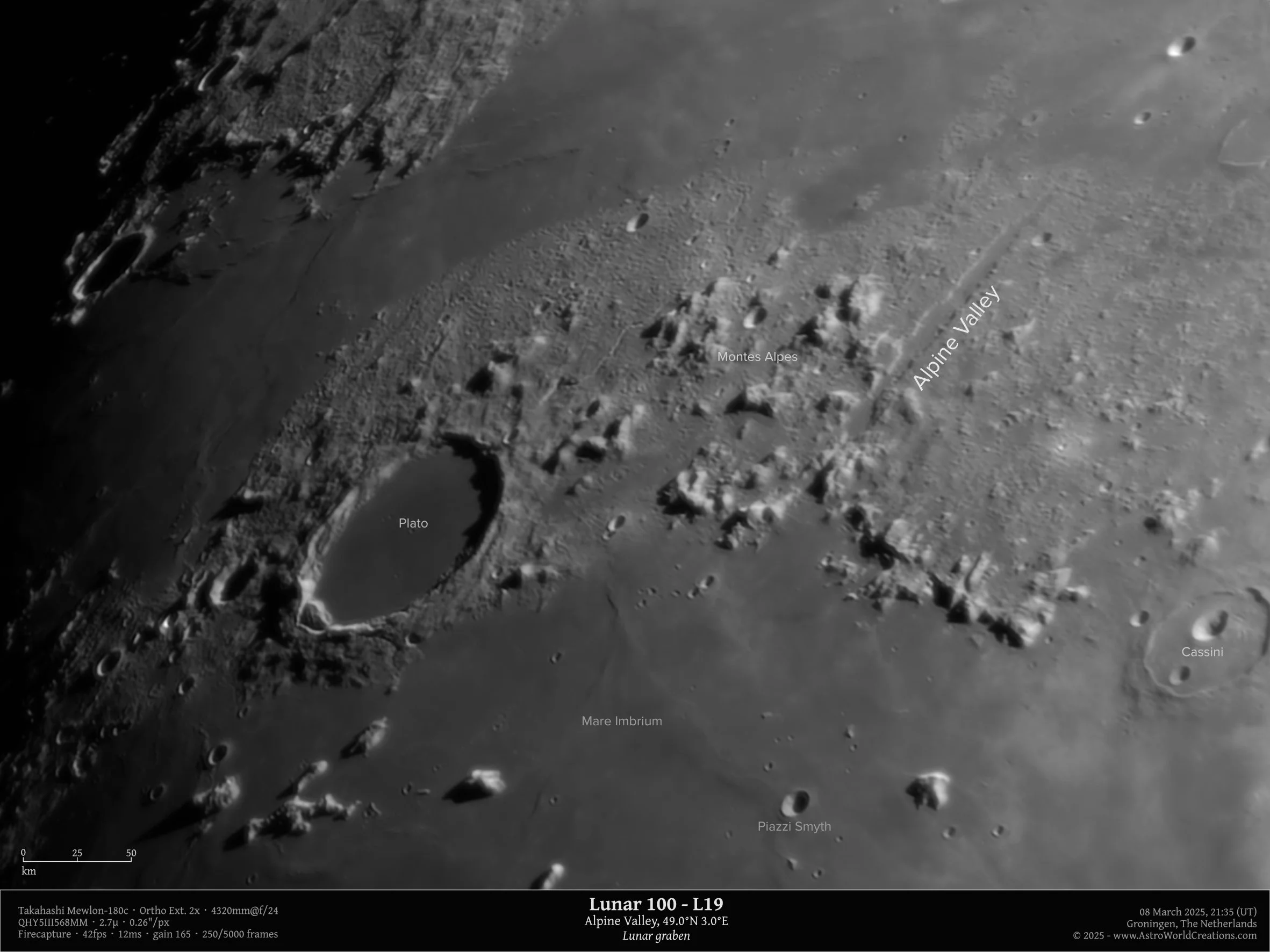 On the very first night testing out the new Mewlon-180c, some short videos were shot of the Moon. After processing the video-files using the new software PlanetarySystemStacker, this moon image came out. Certainly a motivation to do a lot more moon photography and test the Mewlon on some of the planets.